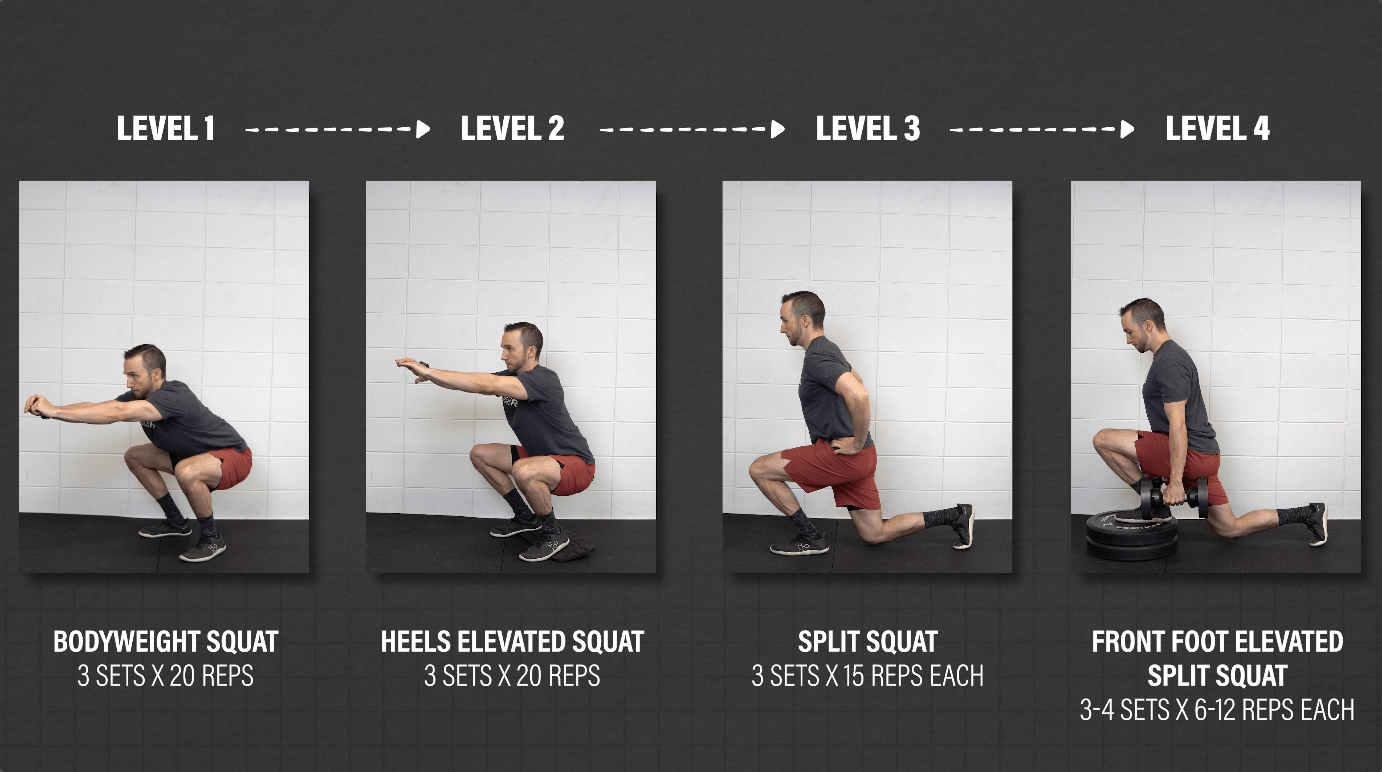 Yukarıdaki egzersizleri ağrısız biçimde veya 2/10 şiddetinde ağrı ile yapılabildiğinde ayak bileği, diz ve kalça güçlendirme egzersizlerine geçmelisiniz , bu egzersizler seviye seviye olup 1. Seviyeden başlayıp 4.seviyeye ilerlemelisiniz, egzersizler yapılırken mutlaka Ağrı oluşturmamalıdır.