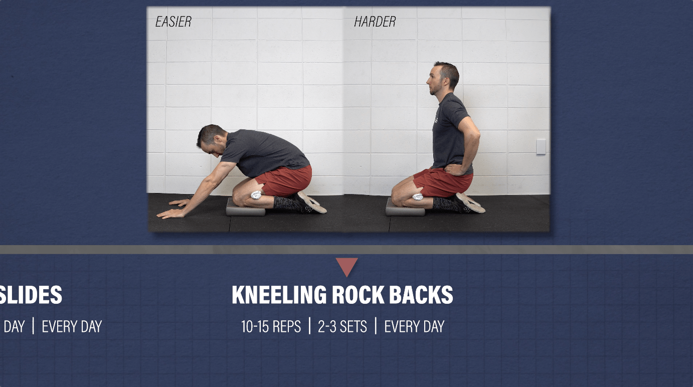 İlk fotoğraftaki gibi oturup diz ekleminize rulo hale getirilmiş havlu koyun ve yavaşça topuklarınızın üstüne oturmaya doğru gelin İkinci fotoğrafa gelmeniz haftalar sürebilir ancak hergün yavaş yavaş daha geriye gelerek bükülme açısını arttırın. Hergün 2×3 kez 10-15 tekrar gerçekleştirin.